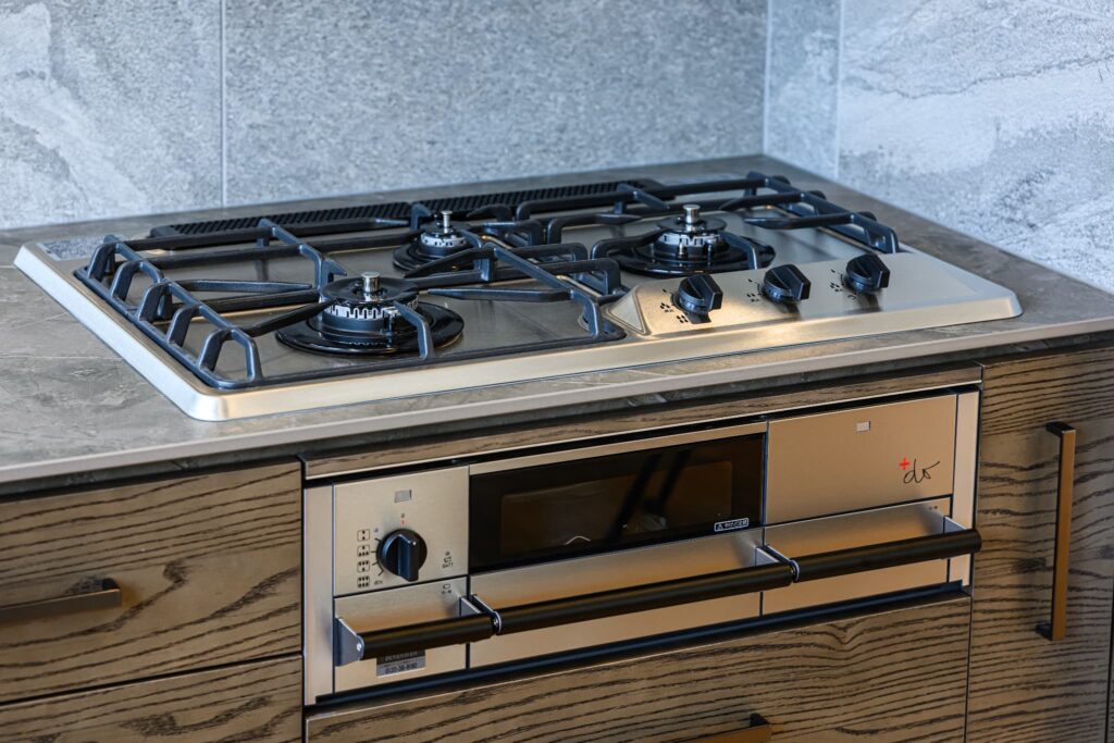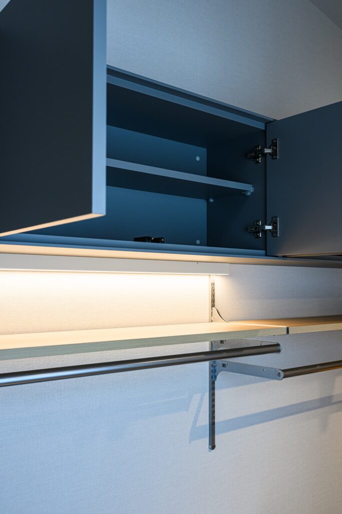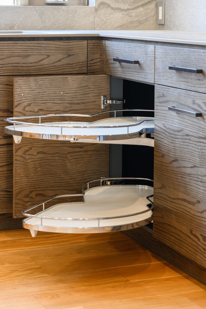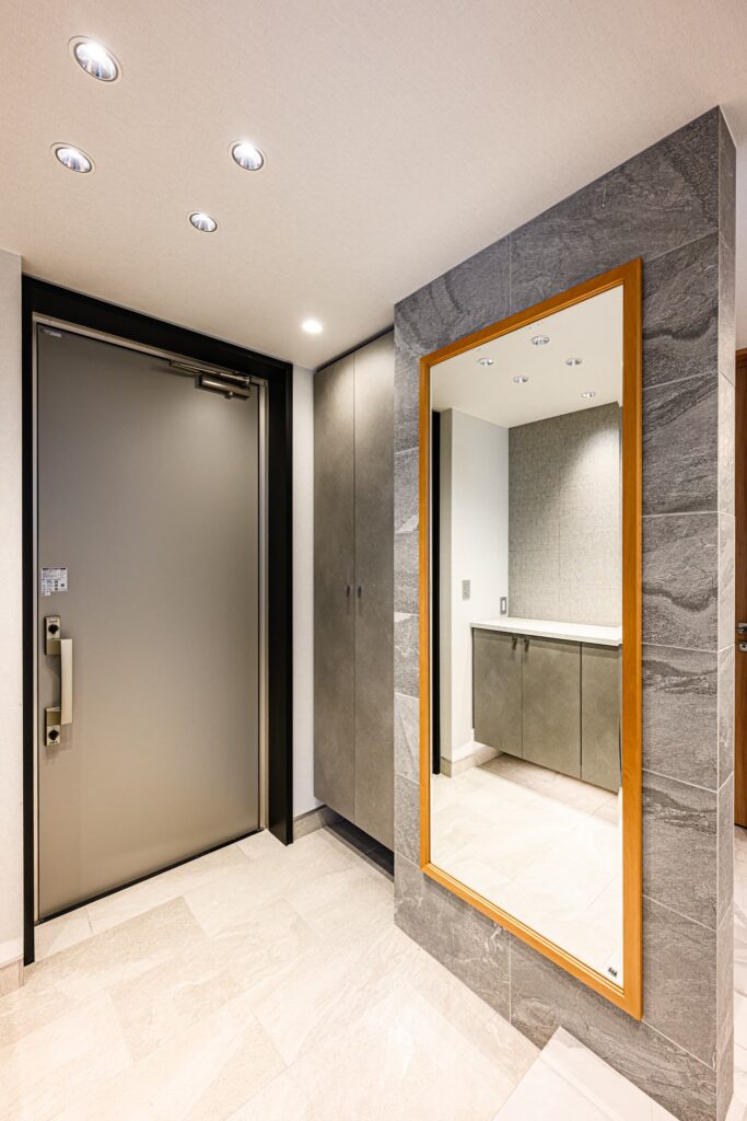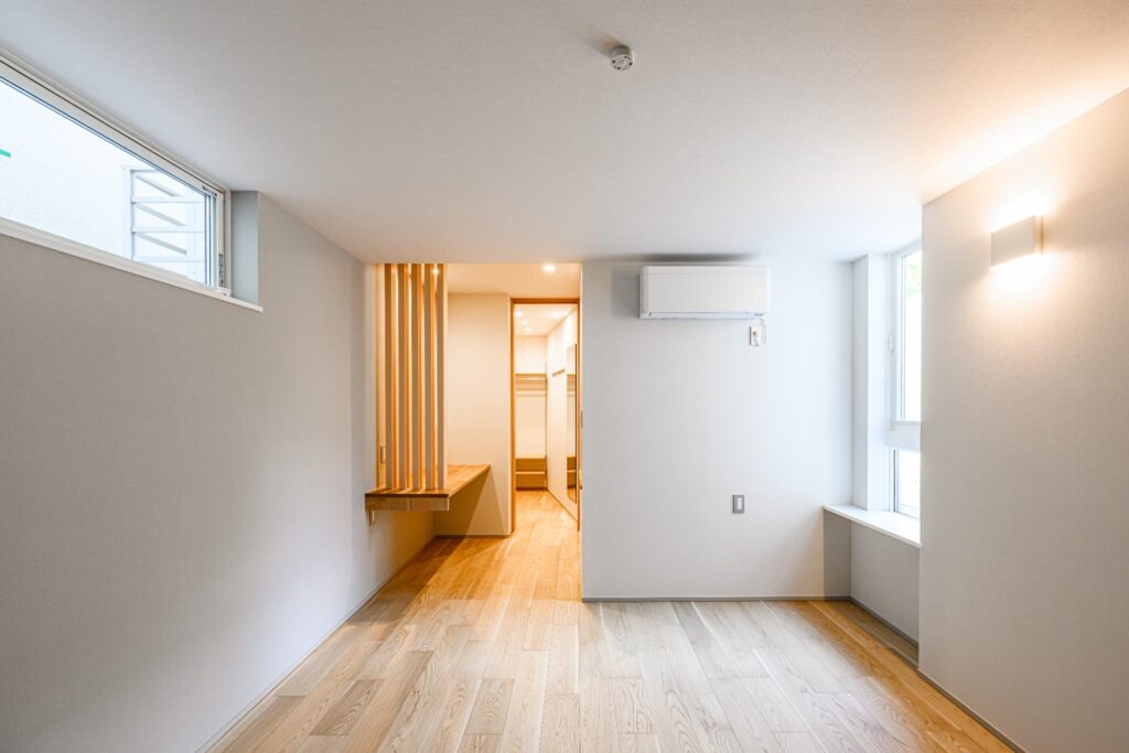 LDKは、空間全体が一体となるよう設計され、キッチンまで視線が心地よく抜ける構成。そのキッチンには、上質な素材とクラフトマンシップが息づくCUCINA(クチーナ)を採用。突板面材の美しい表情が、住まいに静かな存在感をもたらします。ミーレの食洗機や、ハーマン製のダッチオーブン付きガスコンロなど、機能美にもこだわり、日々の暮らしを豊かに彩ります。またランドリールームには、ガス乾燥機「乾太くん」を設置。造作棚とともに、設計段階から考え抜かれた機能的な空間は、家事動線を美しく整え、住まい全体に心地よいリズムを生み出しています。静けさと上質を纏い、暮らすほどに心が満たされる住まいです。