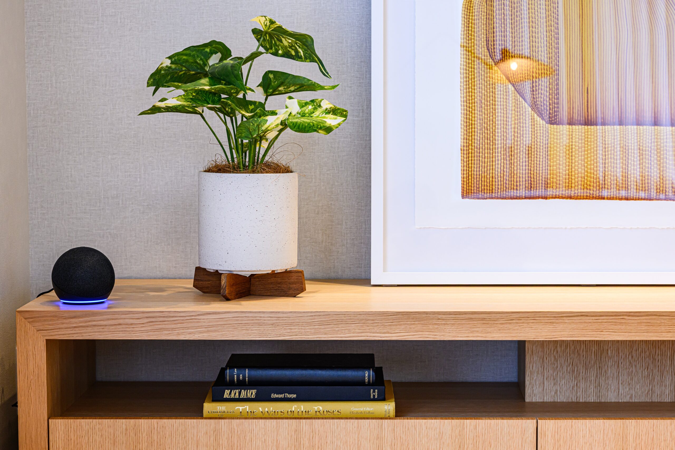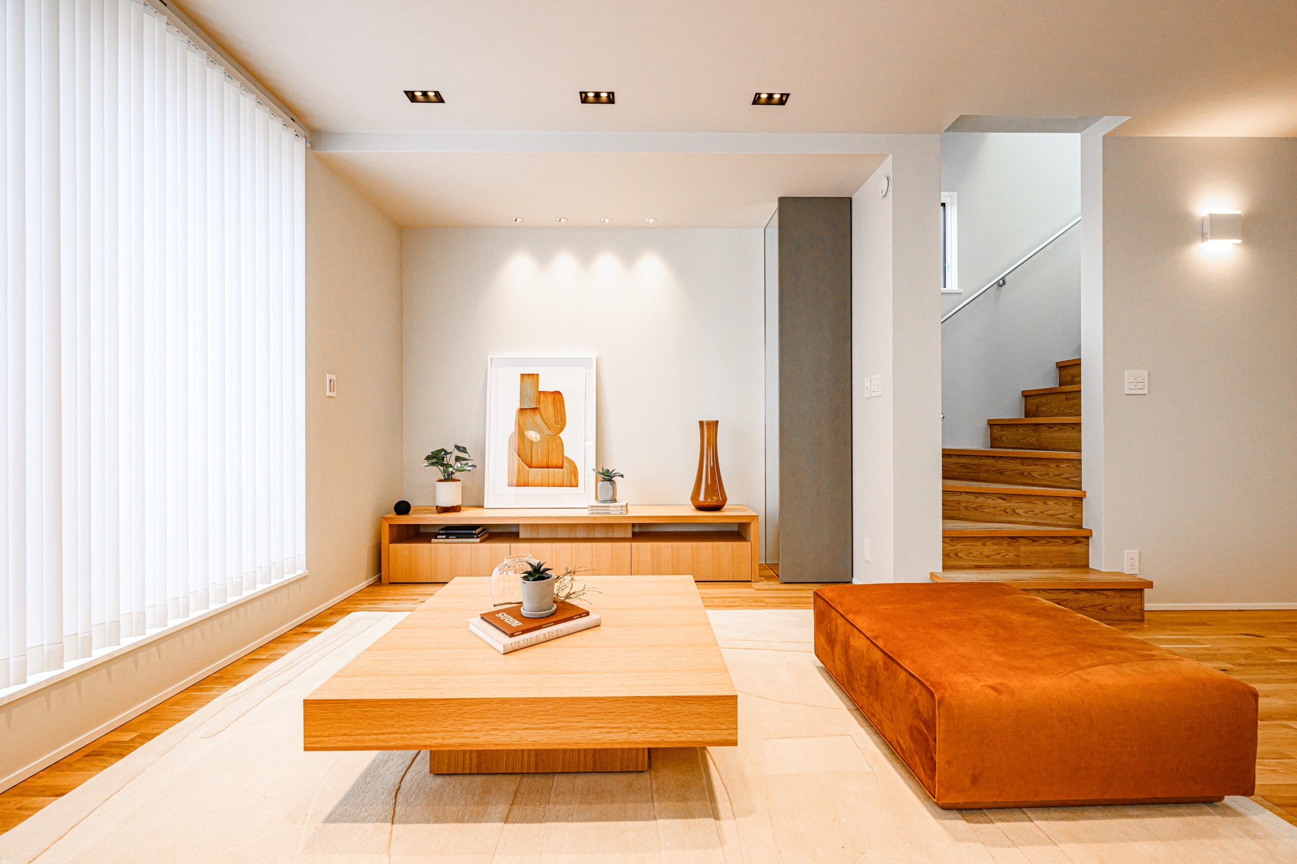 今回のプロジェクトでは、IDÉE様内部のプロのコーディネーターによる家具や小物のスタイリングを取り入れました。空間の魅力を活かしながら、統一感のあるインテリアとアート作品が加わることで住まいとしての質を一段と高めています。