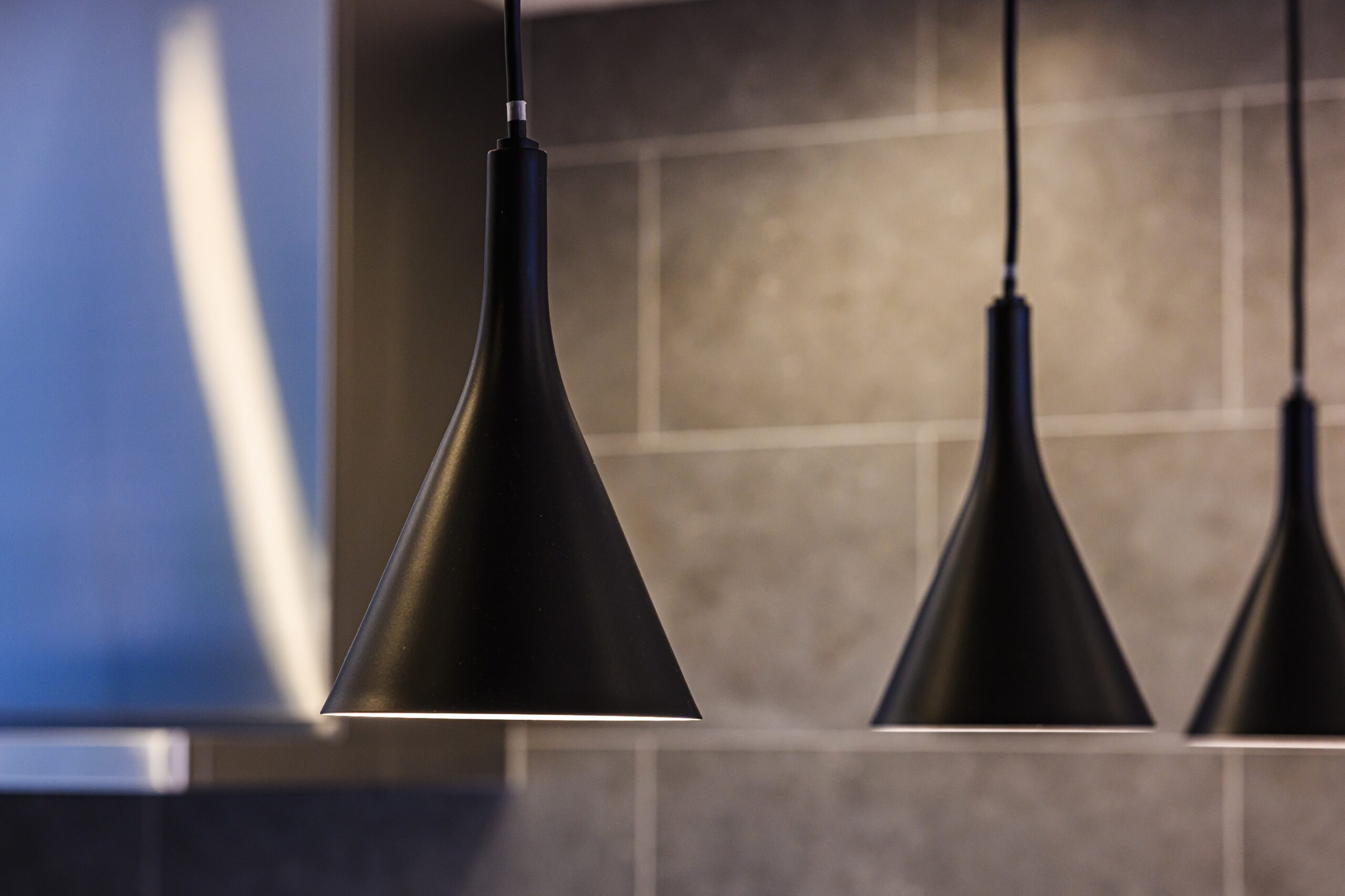 出窓部分やキッチンのライトは黒でメリハリを