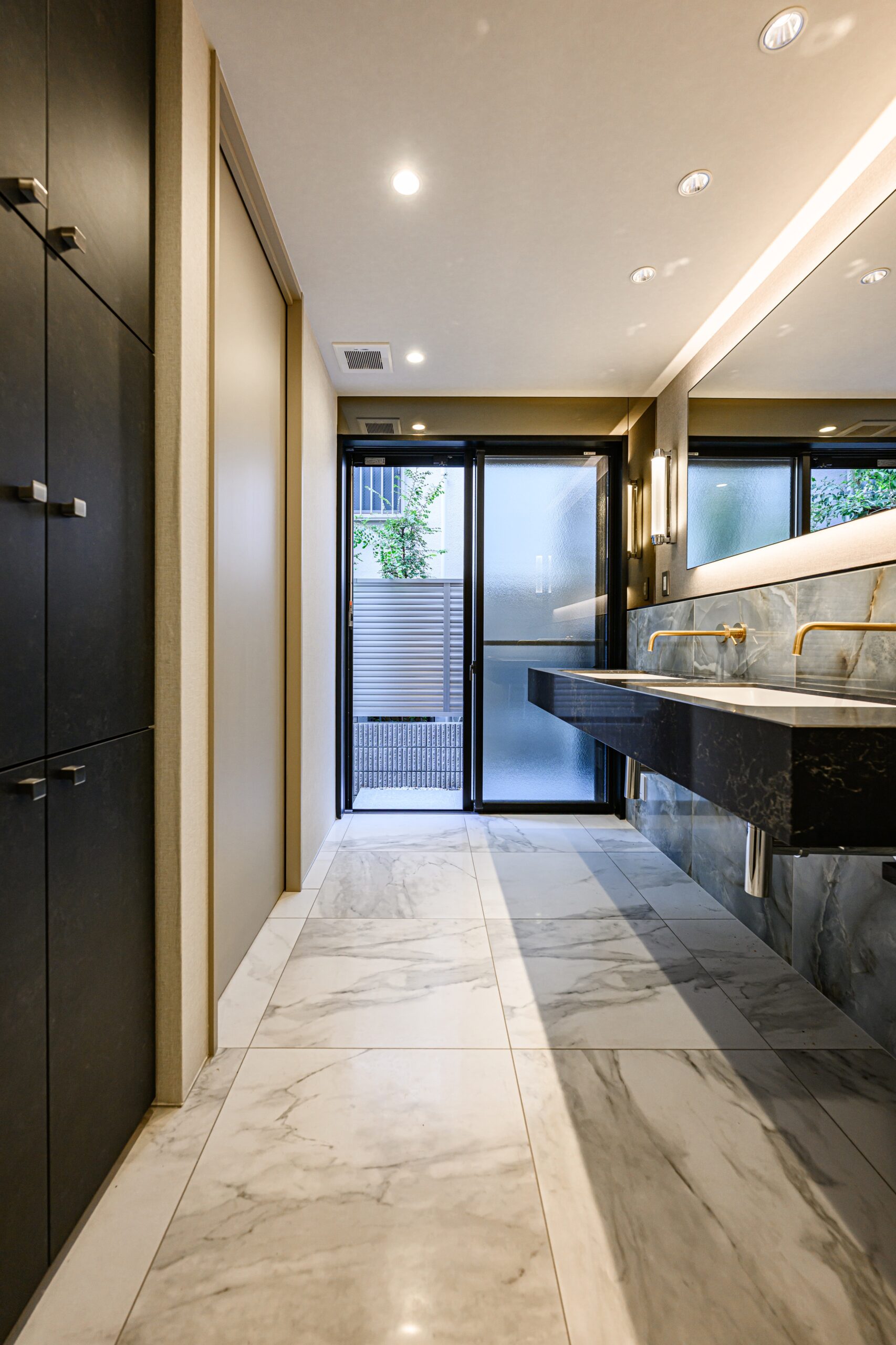 1階洗面の掃き出しサッシと繋がるガーデン